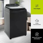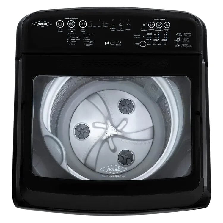 Lavadora Haceb Carga Superior 14 Kilos IVY Digital Negra, Optimiza el tiempo de lavado y alarga la vida de tus prendas con la Lavadora Digital IVY de 14 kg de Haceb. Cuenta con un tablero digital con tecnología que te ofrece programas y funciones especiales que se adecuan a cada tipo de prenda, además, incluye 5 programas automáticos y tecnología de lavado profundo.