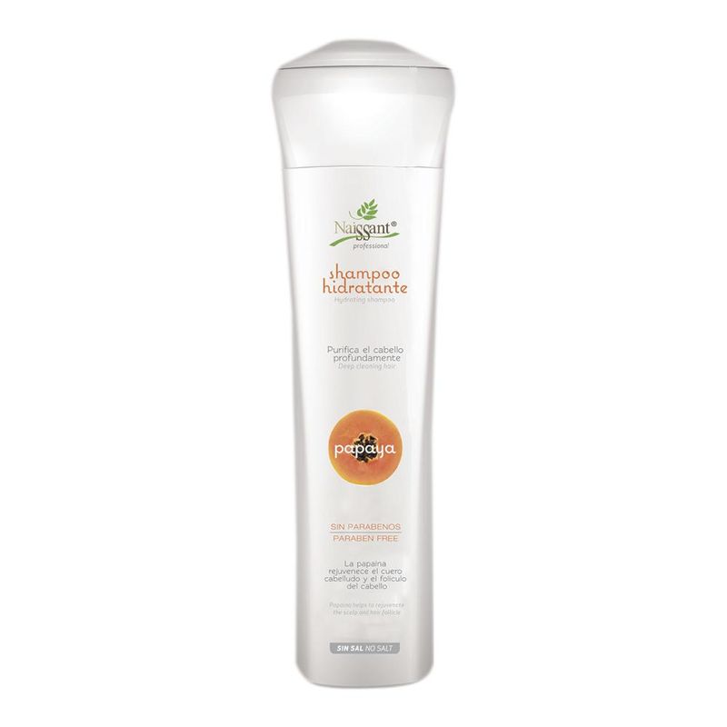 Naissant Shampoo Hidratante Papaya 300ml. LA PAPAINA REJUVENECE EL CUERO CABELLUDO Y EL FOLÍCULO DEL CABELLO. SIN PARABENOS. SIN SAL. PURIFICA EL CABELLO PROFUNDAMENTE. HIDRATACIÓN PROFUNDA.