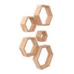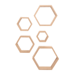 Set de Repisas hexagonales x 5 Unidades, ensamble a pared con cantonera.